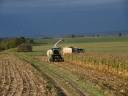 První říjnový den jsme s bráchou vyrazili směr Svitavy s jasným cílem. ZD Trstěnice u Litomyšle. Právě zde probíhala sklizeň kukuřice pro bioplynovou stanici, která byla vybudována v roce 2011. Její výkon činí 1MW. Bioplyn je spalován v kogenerační jednotce Jenbacher. Bylo docela hezké, slunečné dopoledne a cesta ubíhala rychle. Když jsme přijížděli ke středisku potkali jsme Tatru Phoenix s nástavbou Joskin Drakkar. Jak jsem se později dozvěděl, bylo to předváděcí vozidlo. K naší smůle se zrovna blížil čas střídání směn, oběda a hlavně odjezdu Tatry, takže jsem ji stihl jen na jámě a na středisku při tankování. Další nemilá zpráva byla, že domácí řezačka Claas Jaguar 950 stojí na dílně s poruchou. Zaskakovala za ní Frajerka z Vendolí, tu jsem bohužel zastihl taky jen na středisku. Odpoledne se zakrývala jáma a mezi tím se Jaguar zprovoznil, tak jsme mohli vyrazit na pole. Počasí, na rozdíl od dopoledne, bylo jako na horské dráze. Střídavě slunečno, zataženo a nakonec začalo pršet. Ale i tak to byl super den. Všem moc děkuji za ochotu. Na fotkách můžete vidět stroje značky Claas, John deere, New holland, JCB, Joskin a Tatra.